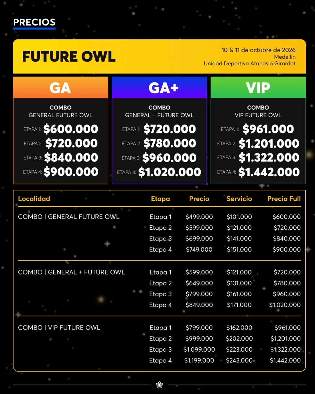 General, MedellÃn, OctubreLa energÃa de Electric Daisy Carnival aterriza por primera vez en Colombia con EDC MedellÃn, los próximos 10 y 11 de octubre de 2026 en el Complejo Deportivo Atanasio Girardot. Reconocido como uno de los festivales de música electrónica más importantes del mundo, EDC trae al paÃs su universo de producción monumental, experiencias inmersivas y una comunidad global que celebra la música, la luz y la libertad. Su llegada marca no solo un hito para la escena electrónica colombiana, sino también su esperado regreso a Latinoamérica, consolidando a MedellÃn como el epicentro continental de la cultura dance bajo el cielo eléctrico que ha conquistado ciudades en todo el planeta.