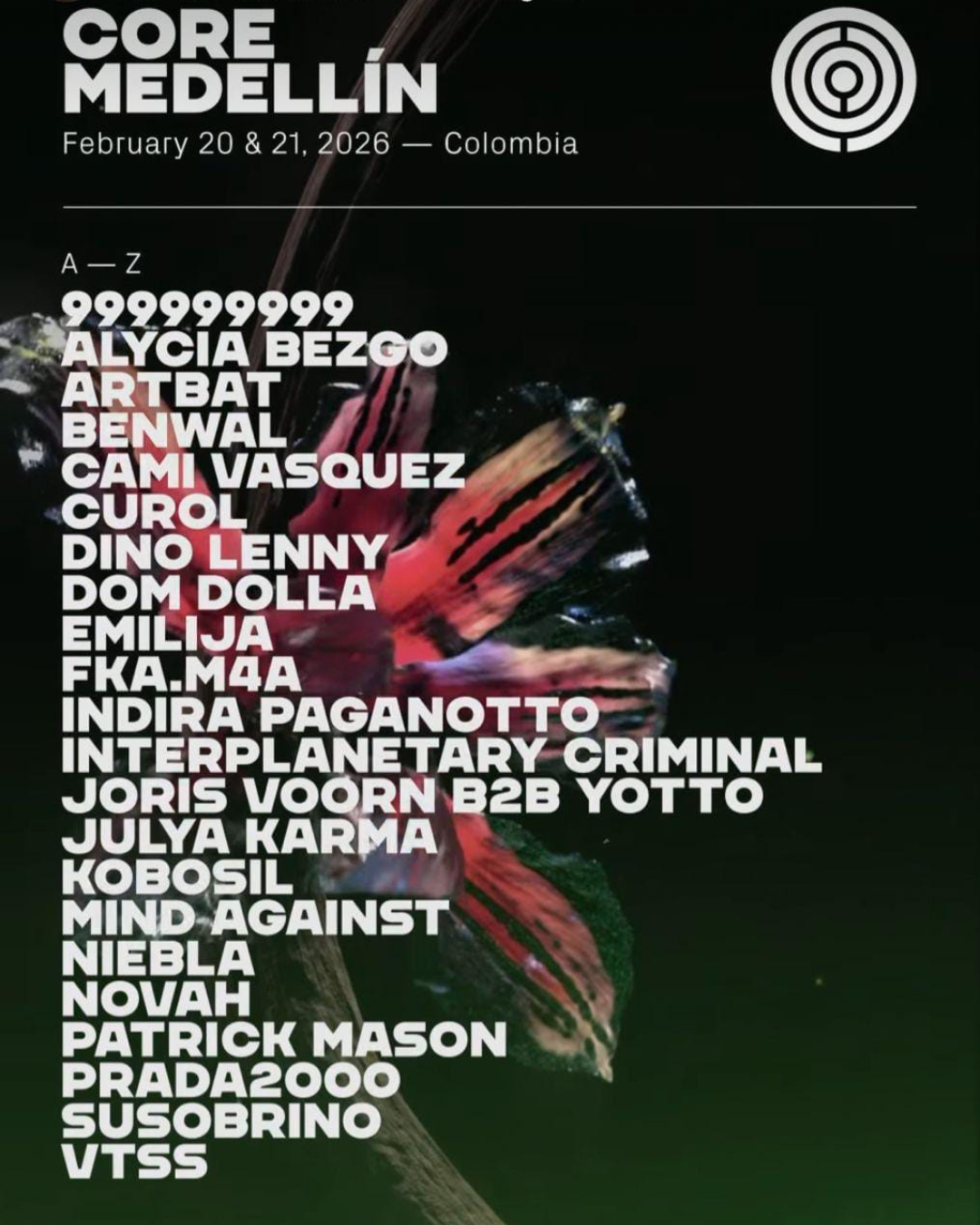 Regresando con su tercera edición, CORE Medellín vuelve a instalar su escenario en Parque Norte, ubicado en el corazón de la segunda ciudad más grande de Colombia. El festival de dos días, que se llevará a cabo el viernes 20 y sábado 21 de febrero, ha sido creado en colaboración con Breakfast Live, un promotor colombiano reconocido por una década de curaduría cultural y eventos icónicos como Ritvales y La Solar Festival. Tras una impresionante segunda edición a comienzos de este año, CORE Medellín 2026 promete una celebración continua de música y naturaleza con los exponentes más relevantes de la música electrónica global